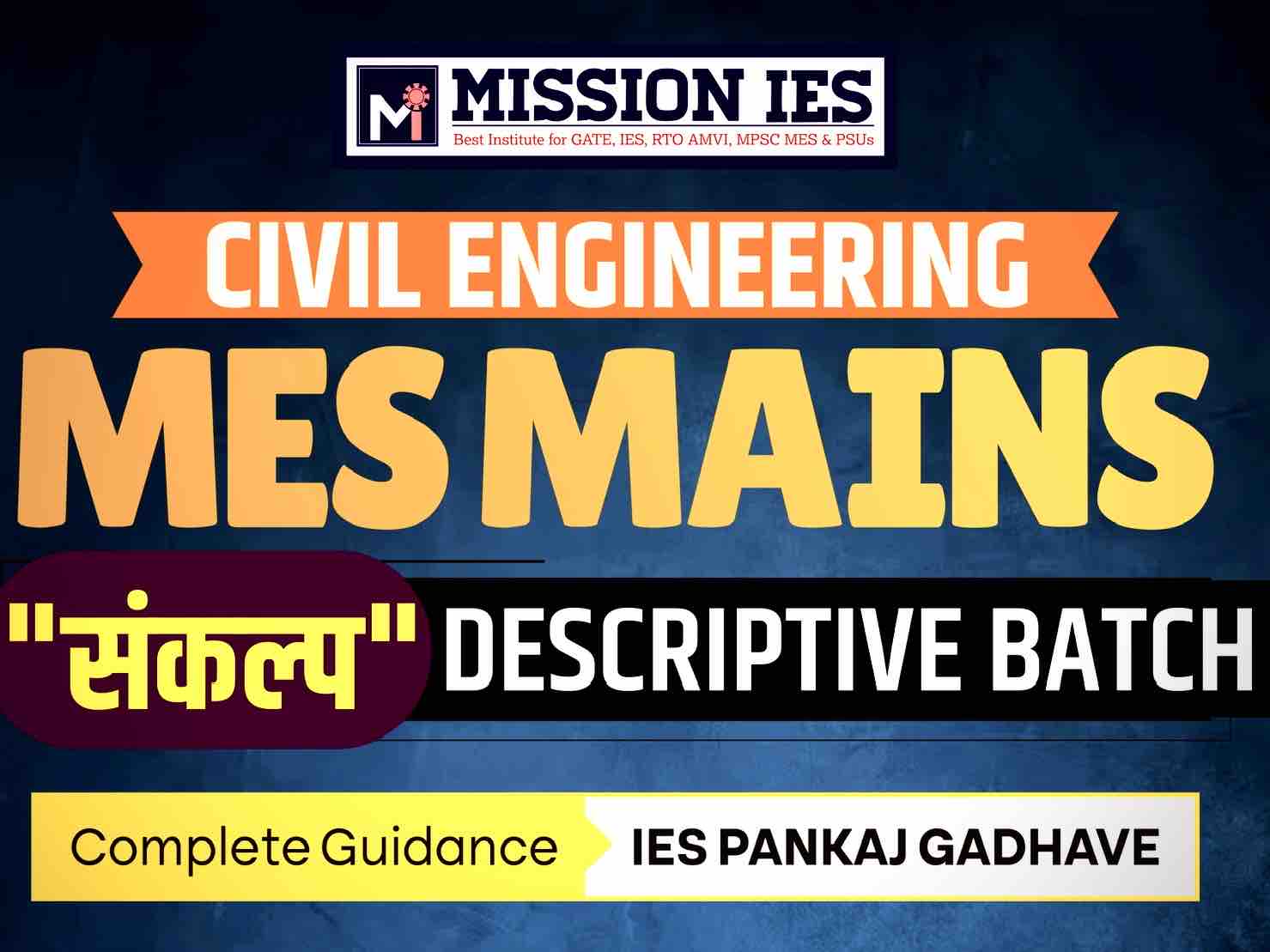 🔰 Features of the Mains Batch 2026 : 👉 Top Faculties of Maharashtra for MES MAINS 👉 Maharashtra's Best Quality Exam Oriented Conceptual Batch for Civil Engineering MPSC Mains 2026. Extensive Focus On Answer Writing & Concept Clearing. 👉 Both Theory & Numerical Covered in Details for all Subjects. 👉 600+ Hours of Extensive & In depth Focus on every concept as per the syllabus. 👉 FREE access to all the guidance lectures by IES Pankaj Sir in 2026. ➡️ Guidance by 🚨 IES Pankaj Gadhave 🚨 Ministry of Defence 🚨 Government of India 🚨 UPSC IES AIR 104 ➡️ Conventional Paper Scores for Pankaj Sir ➡️ Paper 1 : 135/200 ➡️ Paper 2 : 157/200 ➡️ Be the Part of Maharashtra's Top Institute for MES Mains